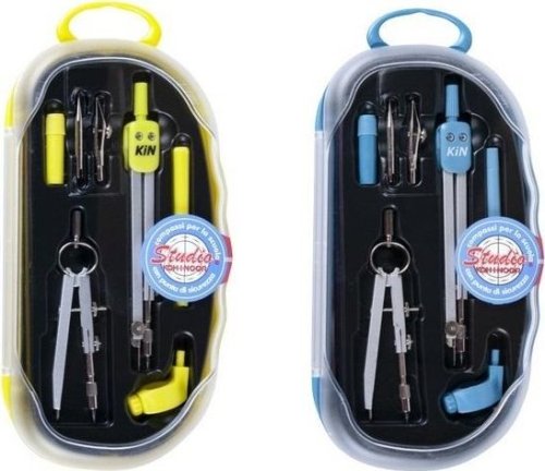 Zestaw z cyrklem, wykonany z metalu oraz wysokiej jakości tworzywa, gwarantuje trwałość i niezawodność. Dostępny w trzech atrakcyjnych kolorach: żółtym, zielonym i niebieskim, co sprawia, że jest nie tylko funkcjonalny, ale również estetyczny.