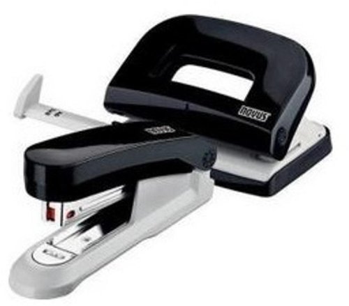Elegancki zestaw Novus zszywacz E15 i dziurkacz E210. Metalowy zszywacz w obudowie z tworzywa sztucznego, posiada zintegrowany metalowy rozszywacz. Umożliwia zszywanie 15 arkuszy papieru 80g/m2 jednorazowo. Metalowy dziurkacz w obudowie z tworzywa sztucznego, posiadający czytelny i łatwo blokujący ogranicznik formatu. 10 lat gwarancji na zszywacz i 5 lat na dziurkacz. Kolor czarny. Opakowanie blistrowe, w zestawie 1000 zszywek No.10.