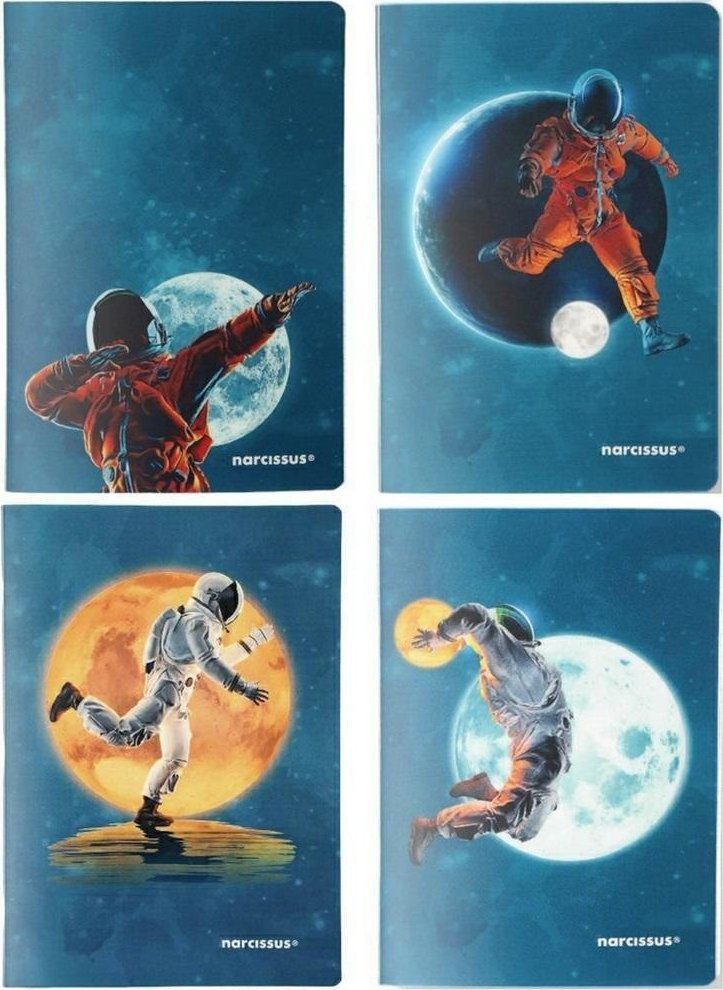 Przyciągające wzrok grafiki to interesujące połączenie tematyki podróży kosmicznych z dynamiką sportową. Kluczowym motywem okładek jest postać kosmonauty na tle księżyca, wkomponowana w ciemnoniebieskie tło.