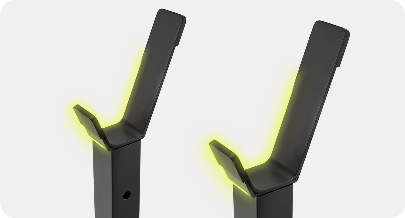 Solidne ramiona asekuracyjne zatrzymują sztangę, gdy nie możesz dokończyć powtórzenia lub tracisz równowagę. Chronią zarówno ćwiczącego, jak i sprzęt oraz podłogę przed uszkodzeniami.