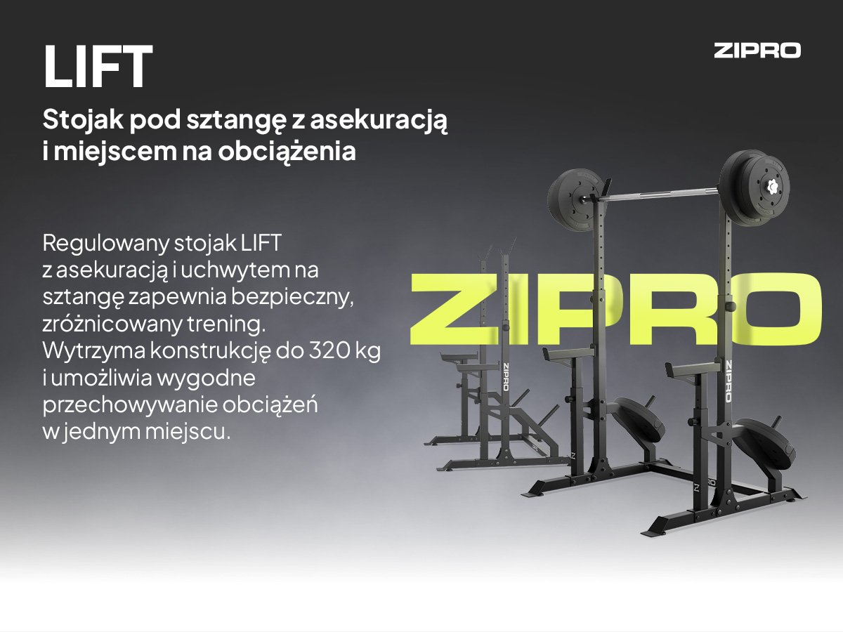 Domowe siłownie często służą do samotnych treningów, co może być nieco kłopotliwe, zwłaszcza gdy ćwiczymy z dużym obciążeniem. Mamy idealne rozwiązanie, które umożliwi Ci bezpieczne wykonywanie nawet najcięższych ćwiczeń. To ZIPRO Lift, niezwykle wytrzymały stojak pod sztangę z asekuracją.