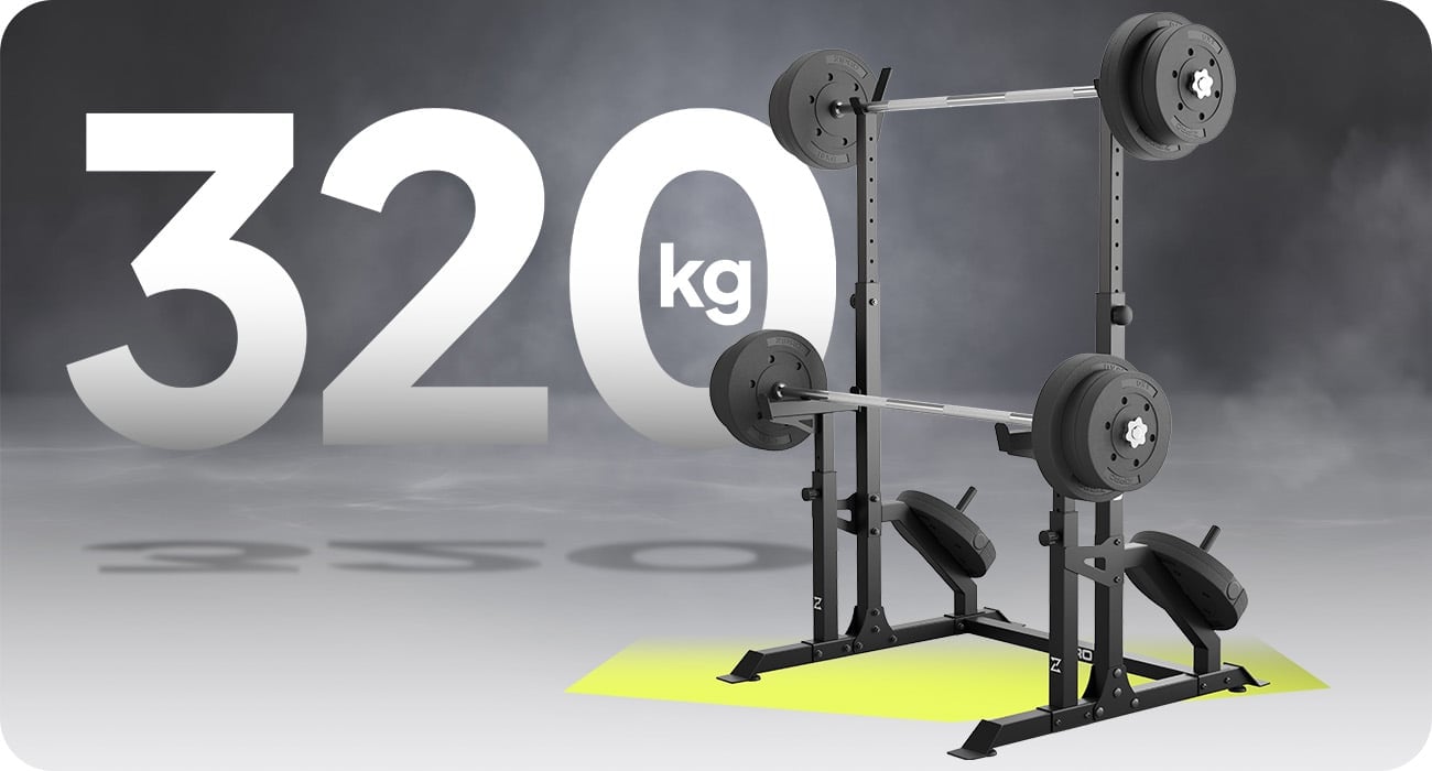 Stojak LIFT został zaprojektowany z myślą o treningach z naprawdę dużymi ciężarami. Odpowiednia geometria i solidne wykonanie pozwalają udźwignąć do 320 kg, zapewniając stabilne i bezpieczne podparcie sztangi.