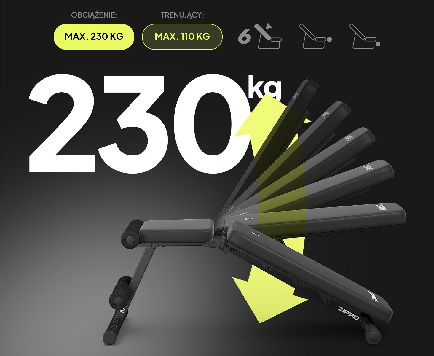 Dzięki temu, że do konstrukcji ławki ZIPRO Tempo posłużyły materiały o wysokiej jakości, jej wytrzymałość wynosi aż 230 kilogramów, z czego maksymalnie 110 kilogramów to ciężar własny ćwiczącego.