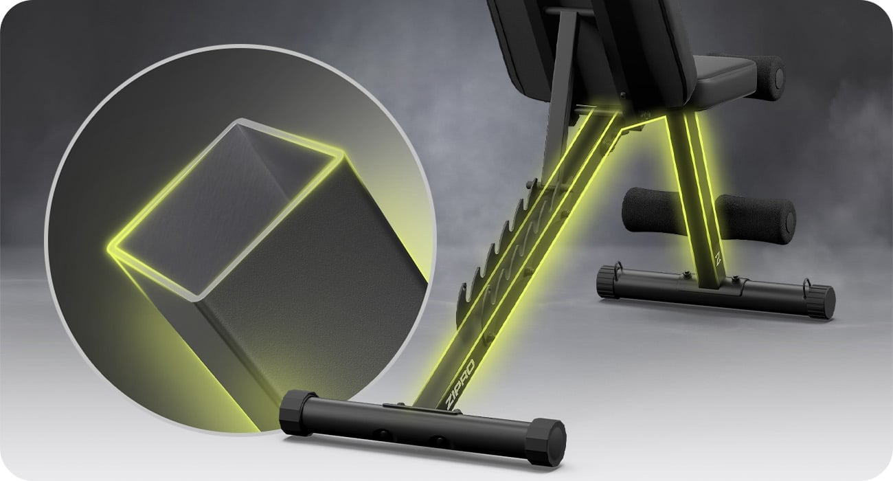Wytrzymała rama ZIPRO Tempo oparta jest na stalowym, kwadratowym profilu, który zapewnia sztywność i stabilność nawet przy dużym obciążeniu. Ławka nie przesuwa się ani nie ugina, co pozwala w pełni skupić się na treningu.