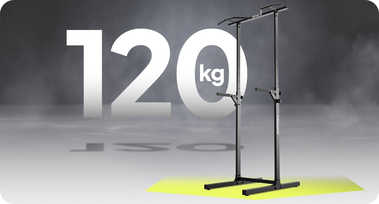 Solidna konstrukcja poręczy umożliwia ćwiczenia z masą własnego ciała i dodatkowymi obciążeniami. Maksymalny udźwig 120 kg pozwala korzystać z pasa obciążeniowego, zwiększając efektywność treningu i rozwój siły.
