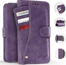Zizo Zizo Slide Out Wallet Pouch - Skórzane etui iPhone X z kieszeniami na karty wewnątrz oraz na zewnątrz etui + stand up (Purple)