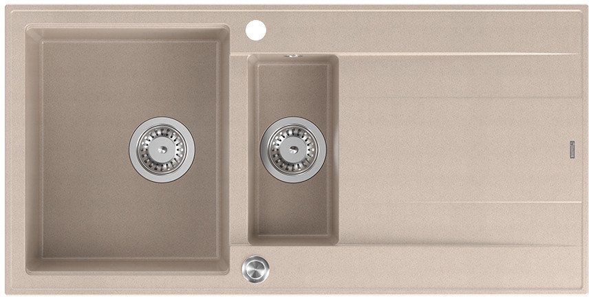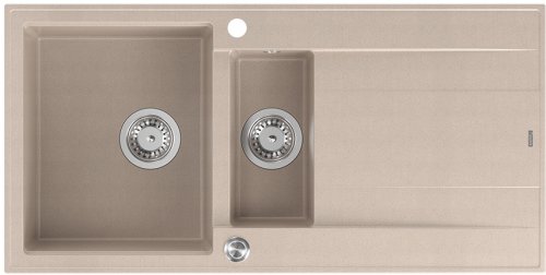Zlewozmywak GraniteQ EVAN 156 zlewozmywak z syfonem Push To Open 1,5-komorowy z/o (1000x500x210; kom. 420x480) pearl beige / elementy stalowe