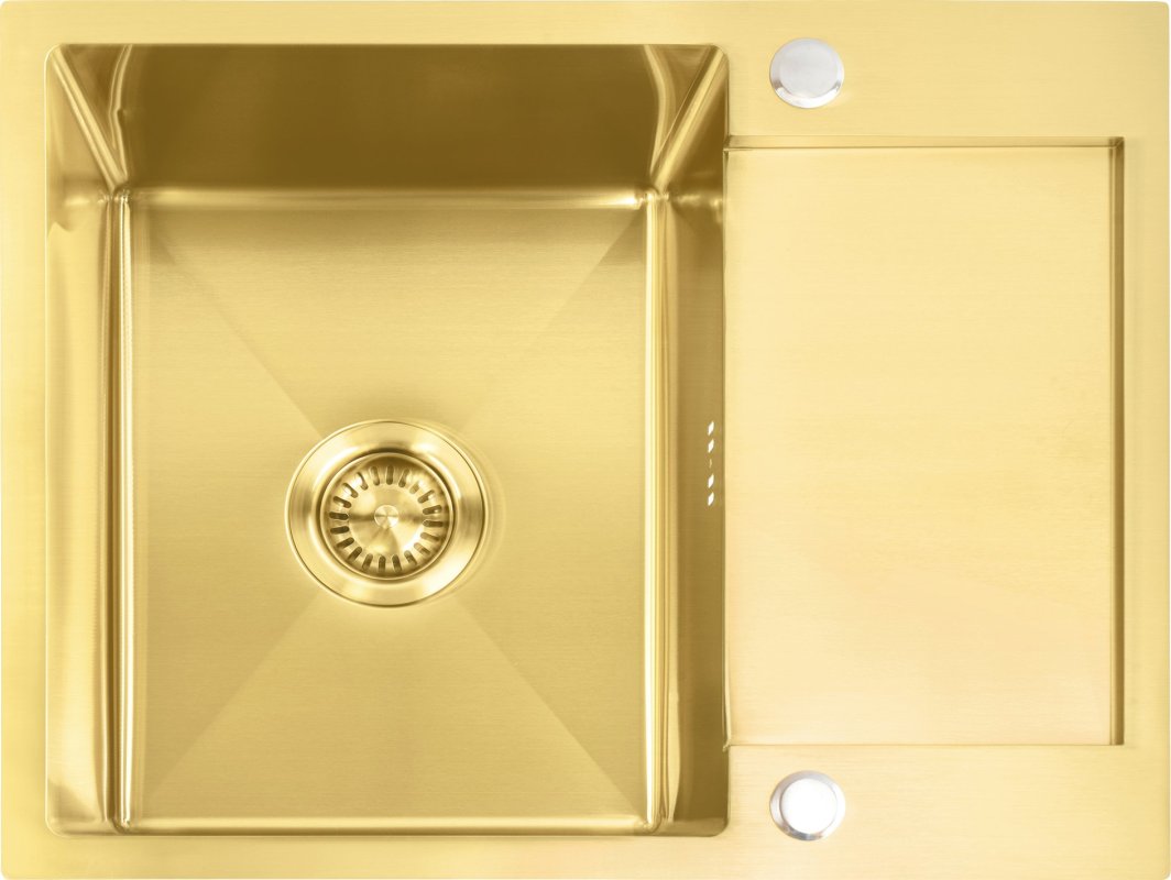 Zlewozmywak stalowy Paul w złotym szczotkowanym wykończeniu to połączenie nowoczesnego designu i praktyczności, które idealnie sprawdzi się w każdej kuchni. Wykonany z wysokiej jakości stali nierdzewnej, zlewozmywak charakteryzuje się dużą odpornością na korozję, zarysowania oraz wysokie temperatury, co sprawia, że jest to produkt niezwykle trwały i niezawodny. Głęboka i pojemna komora zapewnia duży komfort użytkowania. Zlewozmywak jest wyposażony w otwór na baterię, dzięki czemu instalacja armatury jest szybka i prosta. Produkt posiada dopasowany odcieniem odpływ, dzięki czemu całość wygląda bardzo spójnie i elegancko. Higieniczny materiał oraz łatwość czyszczenia gładkich powierzchni sprawia, że zlew zachowuje nieskazitelny wygląd i utrudnia możliwości rozwoju drobnoustrojów.