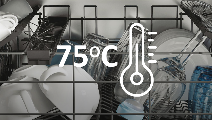 Program higieniczny w zmywarkach Candy, to gwarancja najwyższej higieny. Temperatura 75°C pozwoli Ci zadbać o zdrowie najbliższych, eliminując większość zarazków ze skutecznością na poziomie ponad 99%. To także najbezpieczniejszy sposób zmywania butelek czy innych akcesoriów dziecięcych.
