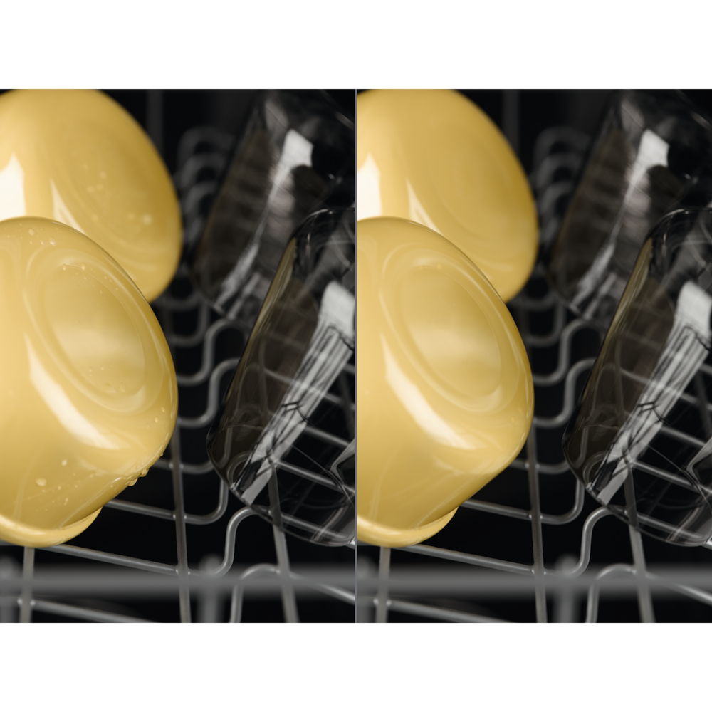 Dwa rotacyjne ramiona spryskujące sprawiają, że wszystkie naczynia są idelnie czyste, ponieważ woda jest równomiernie rozprowadzana po całym urządzeniu.