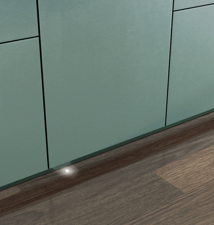Łatwe sprawdzenie czy zmywarka jeszcze pracuje. Jedno spojrzenie na podłogę pod drzwiami zmywarki żeby zobaczyć światło informujące o tym, że zmywanie jest w trakcie. Światło będzie widoczne nawet z daleka. Po zakończonym cyklu zmywania światło automatycznie się wyłączy.