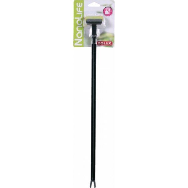 Mały przyrząd wielofunkcyjny. Z jednej strony skrobak do glonów z ostrzem do usuwania osadów, z drugiej skrobak do soli i kołek do sadzenia roślin.