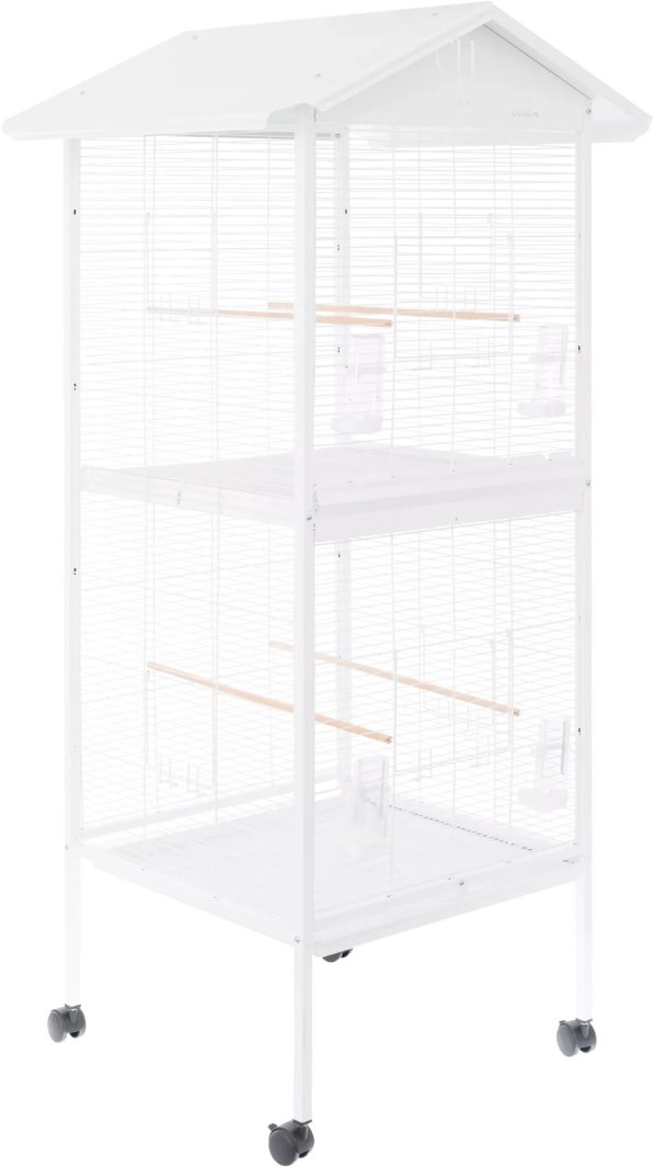 Woliera została wyposażona w 2 wyciągane szuflady z kratkami podłogowymi, które ułatwiają codzienne utrzymanie czystości i zapewniają odpowiednią higienę. W środku znajdują się 4 drewniane żerdki – lekkie, trwałe i przyjazne dla ptasich pazurów i dziobów. ✂