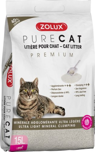 ZOLUX Żwirek PURECAT mineralny zbrylający ultralekki Premium 15 l